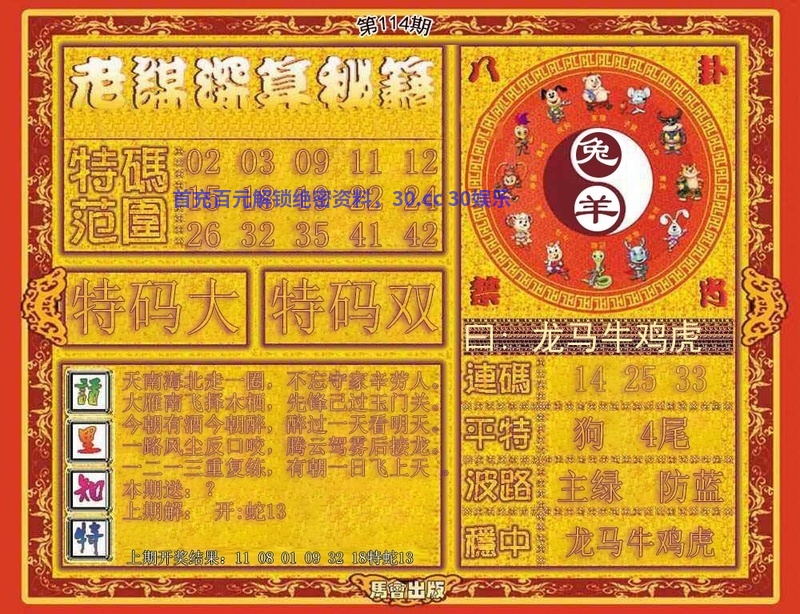 | 114期:绝杀①肖【鸡鸡】特开兔39准 |