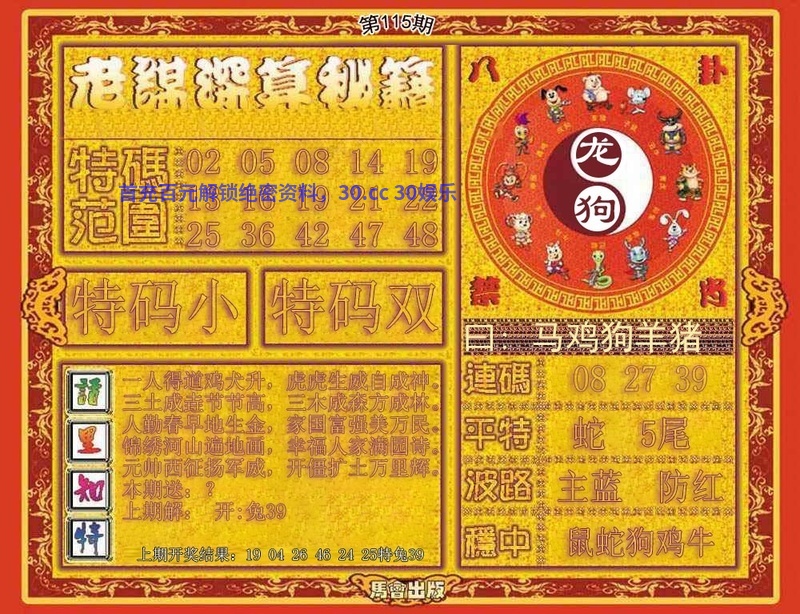 | 111期:平特一尾--《8888尾》--开:马48准 |